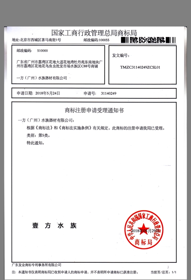 Logo (Chinese name):壹方水族 Logo (English name):Yifang